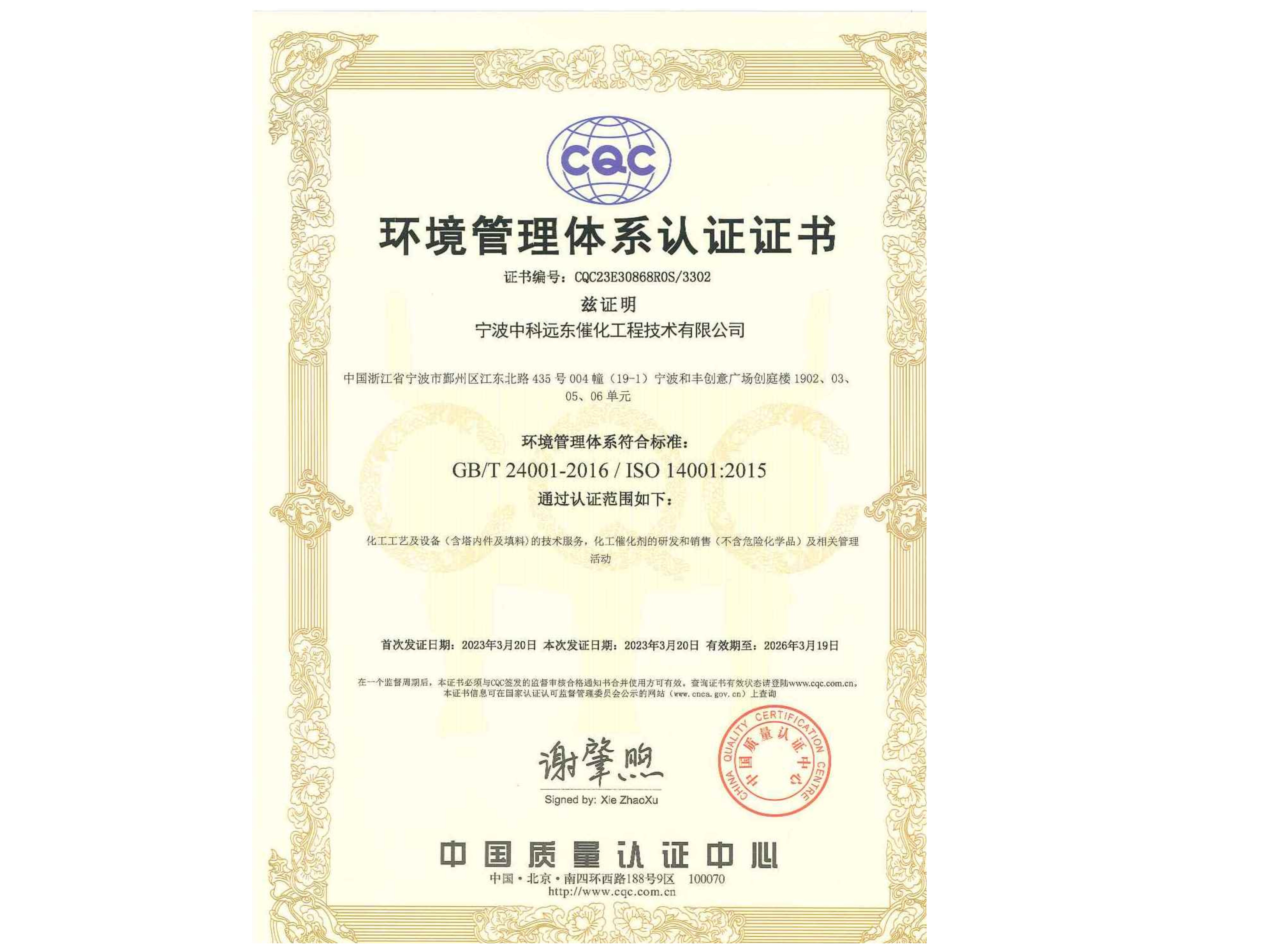 質(zhì)量管理體系證書