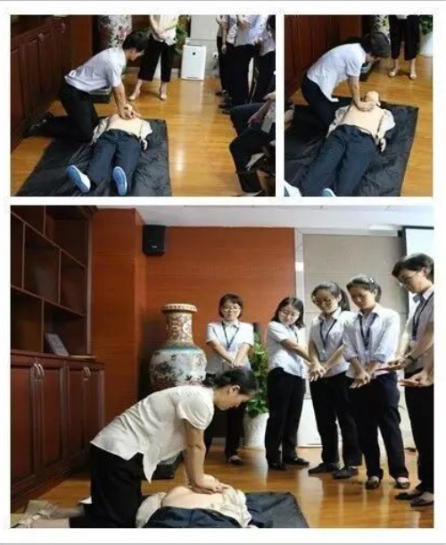鄭亞華老師介紹,心跳驟停是指心臟突然停止搏動,如不及時搶救將失去生命。若及時采取正確有效的心肺復(fù)蘇(CPR)措施,患者的生命有可能被挽回。鄭老師為大家就心肺復(fù)蘇的評估判斷、呼救求援、調(diào)整體位、胸外按壓、開放氣道、人工呼吸等七大步驟做了詳盡而細(xì)致的講解,同時現(xiàn)場示范了搶救步驟與標(biāo)準(zhǔn)動作。